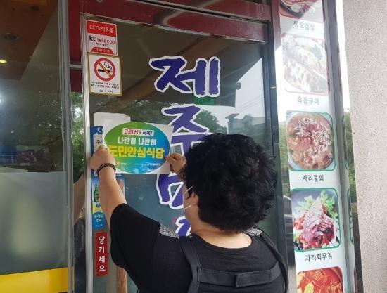 ½Ã¿¡ µû¸£¸é Äڷγª19 Àå±âÈ·Î ÀÎÇÑ °¨¿°º´ È®»êÀ» ¸·±â À§ÇØ ¡®À½½Ä ´ú¾î¸Ô±â, À§»ýÀû ¼öÀú°ü¸®, Á¾»çÀÚ ¸¶½ºÅ© Âø¿ë¡¯ 3´ë ½Çõ°úÁ¦¸¦ ½ÇõÇÏ´Â ¾÷¼Ò¸¦ ¡®¾È½É½Ä´ç¡¯À¸·Î ÁöÁ¤ÇÏ´Â µî ½Ä¹®È °³¼±¿¡ ÃÑ·ÂÀ» ´ÙÇϰí ÀÖ´Ù.