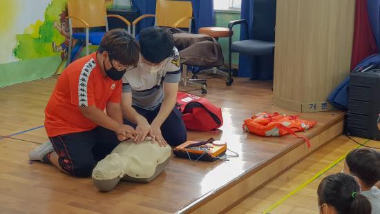 À̹ø ¿¬¾È¾ÈÀü ±³½Ç¿¡¼´Â ¡â ¹Ù´Ù ¾ÈÀü»ó½Ä ¡â ½ÉÆó¼Ò»ý¼ú ¹× ÀÚµ¿ ½ÉÀåÃæ°Ý±â(AED) »ç¿ë¹ý ¡â ±¸¸íÁ¶³¢ Âø¿ë¹ý ¹× ¹°³îÀÌ ¾ÈÀü¼öÄ¢ µî ¾ÈÀüÇÑ ¹°³îÀÌ ¹æ¹ýÀ» ±³À°Çϰí ÀÀ±Þ»óȲ ½Ã ´ë󹿹ýÀ» Á÷Á¢ ½Ç½ÀÇÏ´Â ½Ã°£À» °¡Á³´Ù.