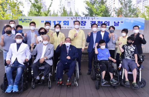 [½Åµ¿¾Æ¹æ¼Û=°¼º´ë ±âÀÚ] À̿뼷 ±¤ÁÖ±¤¿ª½ÃÀåÀÌ 12ÀÏ ¿ÀÈÄ ¼±¸ »ó¹«½Ã¹Î°ø¿ø ¾ß¿Ü¹«´ë¿¡¼ ¿¸° Á¦17ȸ ÇöÀå °æÃ»ÀÇ ³¯ Çà»ç¿¡ Âü¼®ÇØ Á¤¼ø¾Ö ½ÃÀÇ¿ø, ½Ã¹Î±ÇÀÍÀ§¿ø µî°ú Àå¾ÖÀÎ Àüµ¿º¸À屸 ÃæÀü±â ¼³Ä¡¿Í Àå¾ÖÀεéÀÇ °ø¿ø Á¢±Ù¼º Á¦°í ¹æ¾ÈÀ» ¸ð»öÇÑ µÚ ±â³äÃÔ¿µÀ» Çϰí ÀÖ´Ù.