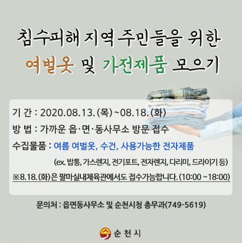 ¼öÁýÇÏ´Â ¹°Ç°Àº ¿©¸§ ¿©¹ú¿Ê, ¼ö°Ç°ú ¹äÅ롤ÀüÀÚ·»Áö¡¤°¡½º·»Áö¡¤Àü±âÆ÷Æ®¡¤µå¶óÀÌ±â µî »ç¿ë°¡´ÉÇÑ ¼ÒÇü °¡ÀüÁ¦Ç°À¸·Î, °¡±î¿î À¾¸éµ¿»ç¹«¼Ò¸¦ ¹æ¹®ÇØ Á¢¼öÇÒ ¼ö ÀÖ´Ù.