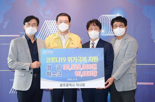 [½Åµ¿¾Æ¹æ¼Û=°¼º´ë ±âÀÚ] À̿뼷 ±¤ÁÖ±¤¿ª½ÃÀåÀÌ 8ÀÏ ½Ãû Á¢°ß½Ç¿¡¼ Á¤Çöö ±¤ÁÖ±¤¿ª½Ã¾à»çȸ ȸÀåÀ¸·ÎºÎÅÍ Äڷγª19 È®»ê ¹æÁö¸¦ À§ÇÑ °¨¿°¿¹¹æ¹°Ç°À» Àü´Þ¹Þ°í ÀÖ´Ù.