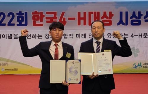 Àü¶ó³²µµ4-H¿¬ÇÕȸ Àü°ø¼ö ¼ö¼®ºÎȸÀå(°íÈﱺ4-H¿¬ÇÕȸ 58, 59´ë ȸÀå, Æ÷µÎ¸é)Àº û³â4-HȸÀÇ ¹ßÀü°ú ´õºÒ¾î Çб³4-Hȸ À°¼º °ø·Î¸¦ ÀÎÁ¤¹Þ¾Æ ¡®Çѱ¹4-H´ë»ó¡¯ º»»ó(³óÃÌÁøÈïûÀå»ó)À» ¼ö»óÇÏ¿´´Ù.