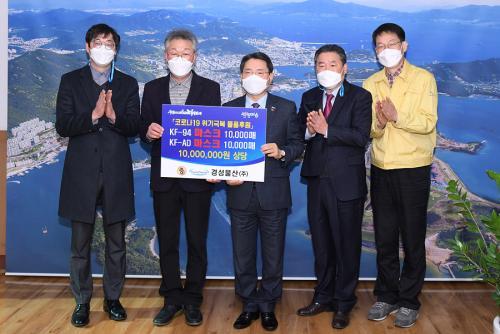¿©¼ö½Ã¿¡ µû¸£¸é Áö³ ÇØ 31ÀÏ À¯ÇüÁØ °æ¼º¹°»ê ´ëÇ¥°¡ ¿©¼ö½ÃÀå½ÇÀ» ã¾Æ ±Ç¿ÀºÀ ½ÃÀå¿¡°Ô 1õ¸¸ ¿ø »ó´çÀÇ ¸¶½ºÅ© KF-94 1¸¸¸Å¿Í KF-AD 1¸¸¸Å ÃÑ 2¸¸¸Å¸¦ Àü´ÞÇß´Ù°í ¹àÇû´Ù.