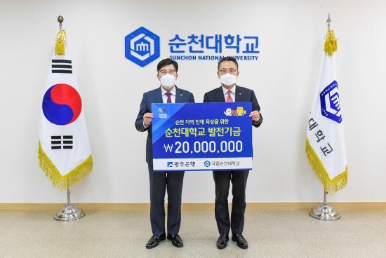 ¼ÛÁ¾¿í ±¤ÁÖÀºÇàÀåÀº "Áö¿ª ÀÎÀç ¾ç¼ºÀ» ÅëÇØ Áö¿ª¹ßÀüÀÇ ±³µÎº¸¸¦ ¸¶·ÃÇØ°¡°í ÀÖ´Â ¼øÃµ´ëÀÇ ¹ßÀüÀÌ ¹Ù·Î Áö¿ª°æÁ¦ ¼ºÀåÀÇ ±â¹ÝÀ̶ó°í »ý°¢ÇÑ´Ù"¸ç "¼øÃµ´ëÇб³ ¹ßÀüÀ» À§ÇØ ¹ßÀü±â±ÝÀ» ±âŹÇÔÀ¸·Î½á âÀÇÀÎÀç ¾ç¼º¿¡ ÇÔ²²ÇÒ ¼ö ÀÖ¾î ±â»Ú´Ù"°í ¸»Çß´Ù.