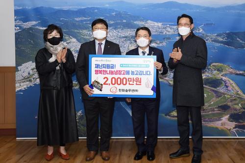 ÇÑȼַç¼Ç(ÁÖ) ¾ÈÀμö Àü¹«´Â Áö³ 24ÀÏ ¿©¼ö½ÃûÀ» ã¾Æ ÀÓÁ÷¿øµéÀÌ Àç³Áö¿ø±Ý ¼ö·É¾× Áß ÀϺθ¦ ¸ð±ÝÇØ ¸¶·ÃÇÑ 2õ¸¸ ¿øÀÇ ±âºÎÁõ¼¸¦ ¡®ÇູÇÑ ³ª´®³ÃÀå°í¡¯ »ç¾÷À» À§ÇØ ½á´Þ¶ó¸ç ±Ç¿ÀºÀ ¿©¼ö½ÃÀå¿¡°Ô Àü´ÞÇß´Ù.
