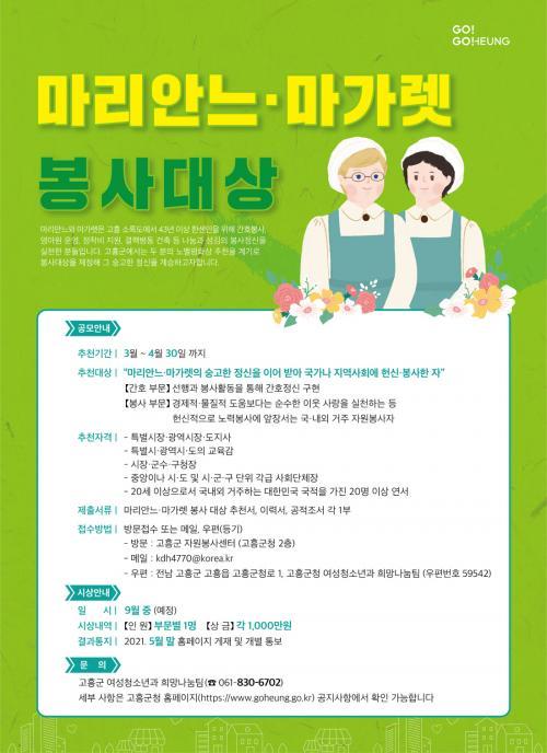 °ø¸ð ´ë»óÀº µÎ ºÐÀÇ ¼þ°íÇÑ Á¤½ÅÀ» À̾î¹Þ¾Æ ±¹°¡³ª Áö¿ª »çȸ¿¡ Çå½Å¡¤ºÀ»çÇÑ ÀÚ·Î, °£È£ºÎ¹®°ú ºÀ»çºÎ¹® °¢°¢ 1¸íÀ¸·Î ½Ã»ó±ÝÀº ºÎ¹®º° 1õ¸¸¿øÀÌ´Ù.