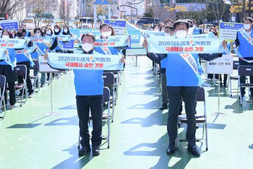 Á׸²Áö¿ª Â÷µ¿°ø¿ø(Á׸²2°ø¿ø)¿¡¼ ÁøÇàµÈ ¹ß´ë½Ä¿¡´Â ¿©¼ö½ÃÀå, µµ¡¤½ÃÀÇ¿ø, ¼Ò¶ó¸é ½Çõº»ºÎÀ§¿ø, ¼Ò¶ó¸é ÁֹΠµî 50¿© ¸íÀÌ Âü¼®Çß´Ù. Çà»ç´Â ¼¶¼¶¿©¼ö 3´ë ½Ã¹Î¿îµ¿ ¹× 2026¿©¼ö ¼¼°è ¼¶ ¹Ú¶÷ȸ ¼º°ø °³ÃÖ ±¸È£Á¦Ã¢, ½Çõ°áÀǹ® ³¶µ¶, ½Çõ±â Àü´Þ, ¼Ò¶ó¸é ÀÚÀ²°úÁ¦ ½Çõ‧È«º¸ ÄÍÆäÀÎ ¼øÀ¸·Î ÁøÇàµÆ´Ù.