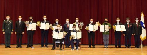 À̹ø Àü¼ö½ÄÀº 6‧25ÂüÀüÀ¯°øÀÚ ¹«°øÈÆÀå ã¾ÆÁֱ⠻ç¾÷ÀÇ ÀÏȯÀ¸·Î ÃßÁøµÆÀ¸¸ç, 6‧25 ´ç½Ã ÀüÅõ¿¡ Âü°¡ÇØ °øÀûÀ» ¼¼¿î ±è¼ø±Ô ¿Ë°ú ±èÁ¾¼ú ¿ËÀ» ºñ·ÔÇÑ À¯Á· 10¸í¿¡°Ô ±Ç¿ÀºÀ ½ÃÀåÀÌ Á÷Á¢ ÈÆÀåÀ» Àü¼öÇß´Ù.
