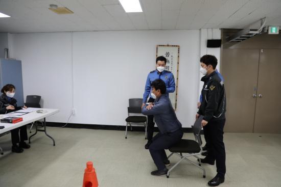 ¼·ù½É»ç¸¦ Åë°úÇÑ À̵éÀº °³Àκ° ¹®Áø ¹× Ç÷¾ÐÃøÁ¤ºÎÅÍ ½ÃÀÛÇÏ¿© ¡ã¾ç¼ÕÀÇ Àý´ë¾Ç·Â ¡ã30ÃÊ µ¿¾È ¾É¾Ò´Ù ÀϾ⠰³¼ö ¡ãÀÇÀÚ¿¡ ¾É¾Æ 3m Ç¥Àû µ¹¾Æ¿À±â ¼øÀ¸·Î ü·Â°ËÁ¤À» ½Ç½ÃÇϰí ÇÕ°ÝÀÚ¿¡ ÇÑÇØ °³º° ¸éÁ¢À» ÇÏ°Ô µÈ´Ù.