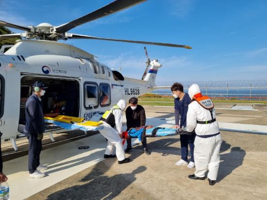 ¿©¼öÇØ°æ °æºñÇÔÁ¤Àº ½Å¼ÓÈ÷ À̵¿ÇÏ¿© ÇöÀå¿¡ µµÂø ÈÄ ´ÜÁ¤À» ÀÌ¿ëÇØ ¾î¼± AÈ£ ÀÀ±ÞȯÀÚ ¿Ü±¹ÀÎ B¾¾(³², 34¼¼)¿Í º¸È£ÀÚ(µ¿·á¼±¿ø)¸¦ °æºñÇÔÁ¤À¸·Î Æí½ÂÇÏ¿© ¿ø°ÝÀÀ±ÞÀÇ·áÀåºñ¸¦ Ȱ¿ëÇØ ȯÀÚÀÇ »óŸ¦ È®ÀÎÇÏ°í °Å¹®µµÇ×À¸·Î À̵¿ °Å¹®µµ Çï±âÀå¿¡ ´ë±âÁßÀÎ ´ÚÅÍÇï±â·Î ¸ñÆ÷¼ÒÀç º´¿ø¿¡ ±ä±Þ À̼ÛÇÏ¿´´Ù.