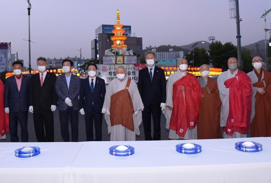 ±Ç¿ÀºÀ ¿©¼ö½ÃÀåÀº Àλ縻¿¡¼ ¡°¿À´Ã ÇÔ²² ¹àÈù µîºÒÀÌ Äڷγª19·Î ÁöÄ£ ¿ì¸® ½Ã¹Îµé°ú Àü ¼¼°è¿¡ Èñ¸Á°ú Ä¡À¯ÀÇ µîºÒÀÌ µÇ±â¸¦ ¹Ù¶õ´Ù¡±¸é¼, ¡°ºÎó´ÔÀÇ ÀÚºñ°¡ µîºÒÀÇ ºÒºûó·³ ¿Â ¼¼»óÀ¸·Î ÆÛÁ®³ª°¡ ¿¹ÀüÀÇ Æò¹üÇÏ°í ¼ÒÁßÇÑ ¿ì¸®ÀÇ ÀÏ»óÀ¸·Î µ¹¾Æ°¡±æ ¹Ù¶õ´Ù¡±°í ¹àÇû´Ù. ¶ÇÇÑ Äڷγª19 ¹ß»ý ÃʱâºÎÅÍ Àû±ØÀûÀ¸·Î ÇùÁ¶ÇØ ÁØ ºÒ±³°è¿¡ °í¸¶¿òÀ» Ç¥½ÃÇß´Ù.