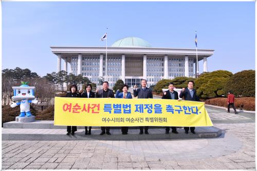 ¿©¼ö½ÃÀÇȸ´Â Áö³ 2018³â 10¿ù ±¸¼ºµÈ ¿©¼ø»ç°Ç Ưº°À§¿øÈ¸¸¦ Áß½ÉÀ¸·Î Ưº°¹ý Á¦Á¤È°µ¿À» Àû±ØÀûÀ¸·Î ÆîÃĿԴÙ. ¹Î´öÈñ À§¿øÀå µî Æ¯À§ À§¿øµéÀº ±¹È¸¸¦ ¼ö½Ã·Î ¹æ¹®ÇÏ¸ç Æ¯º°¹ý Á¦Á¤ Çʿ伺À» ¼³¸íÇß°í, Áö³ 1¿ù¿¡´Â Ưº°¹ý Á¦Á¤ ¿°¿øÀÌ ´ã±ä ¡®µ¿¹é²É½Ã°è¡¯¸¦ 300¿© ±¹È¸ÀÇ¿ø½Ç¿¡ Àü´ÞÇß´Ù. Àüâ°ï ÀÇÀåÀº Áö³ 3¿ù ±¹È¸¸¦ ¹æ¹®ÇØ Æ¯º°¹ý Á¦Á¤À» Ã˱¸ÇÏ´Â Àü³² 6°³ ½Ã¡¤±ºÀÇȸÀÇ °øµ¿¼º¸í¼¸¦ Àü´ÞÇϱ⵵ Çß´Ù.