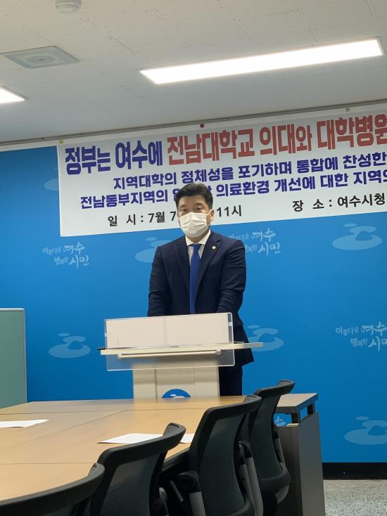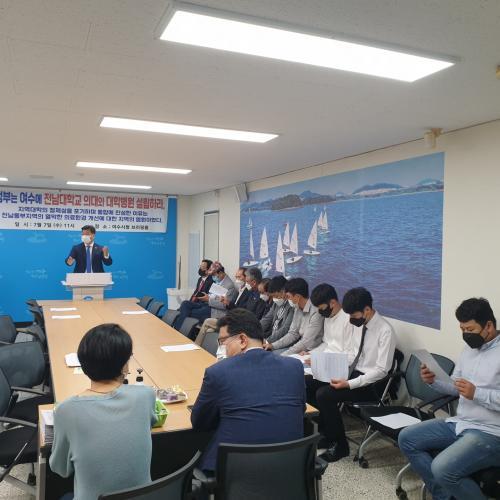 ¿©¼ö½ÃÀÇȸ °í¿ëÁø ÀÇ¿ø(Àü³²´ëÇб³ ¿©¼öÄ·ÆÛ½º ÃÑÇлýȸ ¿ª´ëȸÀå´Ü ´ëÇ¥)Àº 7ÀÏ ¿©¼ö½Ãû ºê¸®Çη뿡¼ ¡°2005³â ¿©¼ö´ë¿Í Àü³²´ë ÅëÇÕ¾çÇØ°¢¼¿¡ ¸í½ÃµÈ ÀÇ´ë¿Í º´¿ø ¼³¸³¿¡ ´ëÇÑ ¾à¼ÓÀ» ÀÌÇàÇÏ¿© ½Å·Ú¸¦ ȸº¹Çϵµ·Ï °·ÂÈ÷ Ã˱¸ÇÑ´Ù¡±°í ¹àÇû´Ù.
