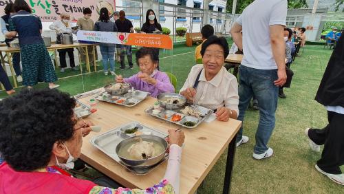 (À¯)Á¶Àº°ñÀç(´ëÇ¥ °¿ë¿ø)ÀÇ ÈÄ¿øÀ¸·Î ÁøÇàµÈ À̳¯ Çà»ç´Â ¹Ù¦ ´Ù°¡¿Â ¹«´õÀ§¸¦ ¾î¸£½ÅµéÀÌ °Ç°ÇÏ°Ô À̰ܳ»½Ã¶ó´Â ¸¶À½À» ´ã¾Æ 200¿© ¸íÀÇ Áö¿ª ¾î¸£½Åµé¿¡°Ô »ï°èÅÁ°ú ÆÏºù¼ö¸¦ ´ëÁ¢Çß´Ù.