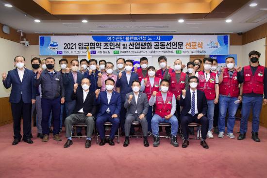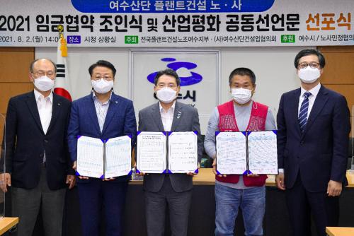 ¿©¼öÁö¿ª Ç÷£Æ®°Ç¼³ ³ë‧»ç´Â Áö³ 5¿ù ¸»ºÎÅÍ 16Â÷·ÊÀÇ Çù»ó°ú ¿©¼ö½Ã ³ë»ç¹ÎÁ¤ÇùÀÇȸ°¡ ÁÖ°üÇÑ Ç÷£Æ®°Ç¼³ ³ë»ç´ëÇ¥ °£´ãȸ µî ¿©·¯ Â÷·Ê Çù»ó ³¡¿¡ Áö³´Þ 26ÀÏ ÀáÁ¤ÇÕÀǾȿ¡ ÃÖÁ¾ ¼¸íÇß´Ù.
