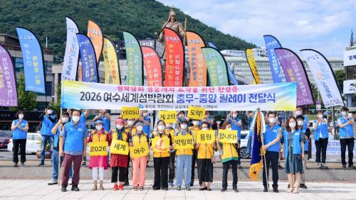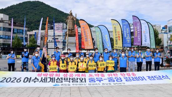 ¿©¼ö½Ã Áß¾Óµ¿Áֹμ¾ÅÍ(µ¿Àå ±è¼ºÁØ)´Â Áö³ 17ÀÏ 2026¿©¼ö¼¼°è¼¶¹Ú¶÷ȸ ¼º°ø°³ÃÖ¸¦ À§ÇÑ ±â¿ø±â¸¦ Ãæ¹«µ¿À¸·ÎºÎÅÍ Àü´Þ¹Þ´Â Àü´Þ½ÄÀ» °³ÃÖÇß´Ù°í ¹àÇû´Ù.
