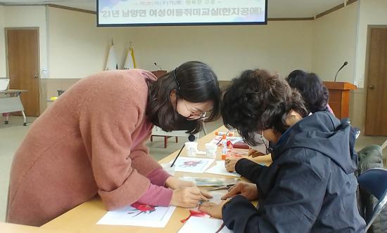 À̹ø ¿©¼ºÀ̵¿Ãë¹Ì±³½ÇÀº ³²¾ç¸é»ç¹«¼Ò¿¡¼ 11¿ù 16ÀϺÎÅÍ 12¿ù 7ÀϱîÁö ¸ÅÁÖ È¿äÀÏ ÃÑ 4ȸ °ÉÃÄ ¿î¿µµÇ¸ç ÇÑÁö°ø¿¹ ¹Ì¼ú°ü ¸®:ÇÇ¿òÀÇ °¹Ì¶ó ´ëÇ¥¸¦ ÃÊûÇÏ¿© ¾Æ¸§´Ù¿î ÇÑÁö°ø¿¹ ÀÛǰÀ» ¸¸µå´Â ¼ö¾÷À» ÁøÇàÇϰí ÀÖ´Ù.