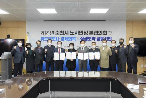 °øµ¿¼±¾ð¿¡´Â ¼øÃµ½Ã, ½ÃÀÇȸ, ³ëµ¿°è, °æ¿µ°è, ½Ã¹Î´Üü ´ëÇ¥ µî ³ë»ç¹ÎÁ¤ ´ëÇ¥µéÀÌ Âü¼®ÇÏ¿´À¸¸ç, °øµ¿¼±¾ð¹®¿¡´Â ¹ü ½Ã¹Î³ª´®¿îµ¿ÀÎ ¡®¼øÃµÇü ±ÇºÐ(ÏèÝÂ) ¿îµ¿¡¯È®»ê ¼Ò»ó°øÀεéÀ» À§ÇÑ Áö¿ª ³» ¼Òºñ Àû±Ø Çù·Â ÀüÅë½ÃÀå Ȱ¼ºÈ ¹× »çȸÀû °æÁ¦±â¾÷ Á¦Ç° ±¸¸Å Áß¼Ò±â¾÷ µî Áö¿ª ±â¾÷ ¾ÈÁ¤Àû ¼ºÀå Ãß±¸ °øµ¿¼±¾ðÀÇ ±¸Ã¼Àû ½ÇõÀ» À§ÇÑ ÀÌÇࡤÁ¡°Ë´Ü ±¸¼º ¹× ¿î¿µ µîÀÇ ³»¿ëÀÌ ´ã°å´Ù.
