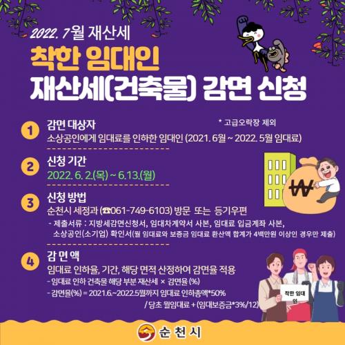 °¨¸é ´ë»óÀº ¼Ò»ó°øÀο¡°Ô ÀÓ´ë·á¸¦ ÀÎÇÏÇÑ °Ç¹° ¼ÒÀ¯ÀÚ·Î, 2020³â 1¿ù ÀÓ´ë·á¸¦ ±âÁØÀ¸·Î 2021³â 6¿ùºÎÅÍ 2022³â 5¿ù±îÁö ÀÓ´ë·á¸¦ ÀÎÇÏÇÑ °æ¿ì¿¡ ½ÅûÇÒ ¼ö ÀÖ´Ù. °¨¸é Çѵµ´Â ÀÓ´ë·á ÀÎÇÏ ÃѾ×ÀÇ 50%±îÁöÀ̸ç, À¯ÈïÁÖÁ¡ µî °í±Þ¿À¶ôÀåÀº ½Åû ´ë»ó¿¡¼ Á¦¿ÜµÈ´Ù.