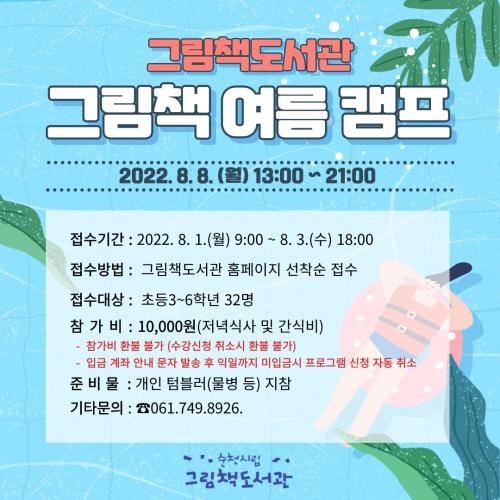 Ä·ÇÁ Âü¿© Á¢¼ö´Â 8¿ù 1ÀϺÎÅÍ 3ÀϱîÁö ¼øÃµ½Ã¸³±×¸²Ã¥µµ¼°ü ȨÆäÀÌÁö¿¡¼ ¼±Âø¼øÀ¸·Î ½Åû °¡´ÉÇϸç Âü°¡ºñ´Â ¸¸¿øÀÌ´Ù.