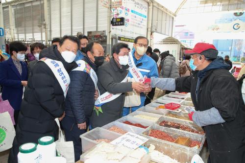 Á¤½ÃÀåÀº 1¿ù 16ÀÏ ±¤¾ç5ÀϽÃÀå°ú ±¤¾ç¸ÅÀϽÃÀåÀ» Â÷·Ê·Î ¹æ¹®ÇÏ¿©, ÁغñÇÑ ¿Â´©¸®»óǰ±ÇÀ¸·Î Á÷Á¢ Á¦¼ö¿ëǰÀ» ±¸ÀÔÇÏ°í »óÀεé°ú ´ëȸ¦ ³ª´©¸ç ¾î·Á¿òÀ» °Þ´Â ÀüÅë½ÃÀå »óÀεéÀ» °Ý·ÁÇß´Ù.