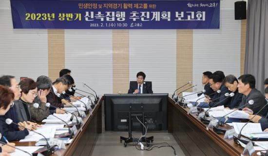 À̳¯ º¸°íȸ´Â °ø¿µ¹Î ±º¼ö¸¦ ºñ·ÔÇØ °£ºÎ °ø¹«¿øµéÀÌ Âü¼®ÇÑ °¡¿îµ¥ 2023³âµµ »ó¹Ý±â ½Å¼ÓÁýÇà ÃßÁø°èȹÀÇ ÃѰýº¸°í ÈÄ, °¢ ºÎ¼º°·Î ÀÚü ÃßÁø°èȹ°ú ÇÔ²² ÁÖ¿ä »ç¾÷ÀÇ ÃßÁø»óȲ ¹× ÁýÇà°èȹÀ» Á¡°ËÇÏ´Â ¼øÀ¸·Î ÁøÇàµÆ´Ù.