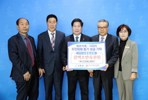 14ÀÏ¿¡´Â °íÈïÀ¾±³È¸(´ëÇÑ¿¹¼ö±³Àå·Îȸ ÃÖµ¿½Ä ¸ñ»ç)¿¡¼ Çö±Ý 300¿©¸¸¿ø, ¿¹»Û¼Õ¸ð¾Æ ȸ¿øÀϵ¿(ÀÌÀÎÇà, ±èÇö¼÷, Áö¿øÁ¤, ±èº¸°æ)ÀÌ ±¸È£¹°Ç° ³Ø¿ö¸Ó 100°³(100¸¸¿ø »ó´ç)¸¦ °íÈﱺ¿¡ Àü´ÞÇß´Ù.