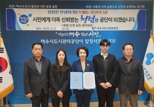 À̹ø °áÀÇ´ëȸ´Â ÀÌ»çÀåºÎÅÍ Àü Á÷¿øµéÀÌ ¼Ö¼±¼ö¹üÇϴ û·Å ¹× ÀαÇÁ¸ÁßÀÇ Á¶Á÷¹®È È®»êÀ» À§ÇÏ¿© ¸¶·ÃµÇ¾ú°í, û·ÅÇÑ °øÁ÷¹®È Á¶¼ºÀ» ´ÙÁüÇÏ´Â °áÀǹ®À» ³¶µ¶Çϸç û·Å¡¤À뱂 ½Çõ ÀÇÁö¸¦ ´ÙÁ³´Ù.