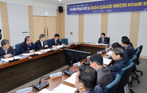 À̳¯ º¸°íȸ´Â °ø¿µ¹Î ±º¼ö¸¦ ºñ·ÔÇØ °£ºÎ °ø¹«¿ø 20¿© ¸íÀÌ Âü¼®ÇÑ °¡¿îµ¥ °¢ ºÎ¼º° ÁÖ¿ä Çٽɻç¾÷ ÃßÁøÇöȲ º¸°í¿Í ±¹¡¤µµºñ È®º¸ °ÇÀÇȰµ¿À» Á¡°ËÇÏ´Â ¹æ½ÄÀ¸·Î ÁøÇàµÆ´Ù.