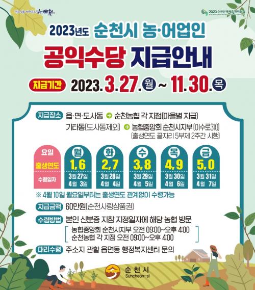°øÀͼö´çÀº º»ÀÎ ½ÅºÐÁõÀ» ÁöÂüÇØ µ¿Áö¿ªÀº Ãâ»ý¿¬µµ¿¡ µû¸¥ 5ºÎÁ¦¿¡ ¸ÂÃç ³óÇùÁß¾Óȸ ¼øÃµ½ÃÁöºÎ¸¦ ¹æ¹®Çϰí, À¾¸éÁö¿ª°ú µµ»çµ¿Àº ¸¶À»º° ÁöÁ¤µÈ ¼ö·É³¯Â¥¿¡ ¸ÂÃç ÁÖ¼ÒÁö ³óÇù¿¡¼ ¼ö·ÉÇÏ¸é µÈ´Ù.