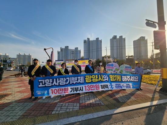 ½Ã´Â °íÇâ»ç¶û±âºÎÁ¦¿¡ ´ëÇÑ ÀÎÁöµµ¸¦ ³ôÀ̰í Âü¿©¸¦ À̲ø¾î ³¾ ¼ö ÀÖµµ·Ï ½Ã¹Î ´ë»ó È«º¸¸¦ Áö¼ÓÀûÀ¸·Î Àü°³ÇÒ »Ó¸¸ ¾Æ´Ï¶ó ±âºÎÀÚÀÇ ÀÚ±à½ÉÀ» °íÃëÇÒ ¼ö ÀÖ´Â ±â±Ý»ç¾÷À» ¹ß±¼Çϱâ À§ÇØ ±¤¾ç½Ã °íÇâ»ç¶û±â±Ý¿î¿ë½ÉÀÇÀ§¿øÈ¸ ±¸¼º°ú ±â±Ý¼³Ä¡¸¦ ÃßÁøÇϰí ÀÖ´Ù.