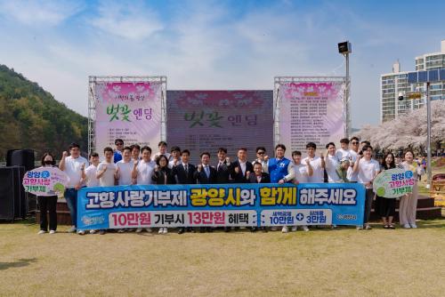 ƯÈ÷ ¡®¼ÃµÀÇ º½, ±¤¾ç º¢²É¿£µù¡¯ Çà»çÀå¿¡¼´Â Çà»ç ÁÖ°üÀÎ ±¤¾çJC(ȸÀå ¾çÁ¤ÈÆ) ȸ¿øµé°ú Á¤ÀÎÈ ±¤¾ç½ÃÀå, ¼¿µ¹è ±¤¾ç½ÃÀÇȸ ÀÇÀå, ½ÃÀÇ¿ø, ½Ã Á÷¿ø µî 30¿© ¸íÀÌ Âü¼®ÇÑ °¡¿îµ¥ ¡®°íÇâ»ç¶û±âºÎÁ¦ ±¤¾ç½Ã¿Í ÇÔ²² ÇØÁÖ¼¼¿ä¡¯¶ó´Â ½½·Î°ÇÀ¸·Î °íÇâ»ç¶û±âºÎÁ¦ µ¿ÂüÀ» À§ÇØ ¹Î°üÀÌ ÇÔ²² Ä·ÆäÀÎÀ» ½Ç½ÃÇØ Àǹ̸¦ ´õÇß´Ù.
