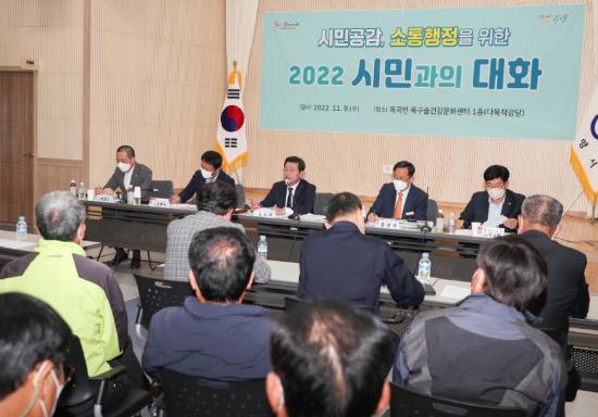 À̹ø Çà»ç´Â Á¤ÀÎÈ ½ÃÀå ÃëÀÓ ÀÌÈÄ °³ÃֵǴ µÎ ¹øÂ° ½Ã¹Î°úÀÇ ´ëÈ·Î ÀϹÝÁÖ¹Î, µµ¡¤½ÃÀÇ¿ø, »çȸ´ÜüÀå, Áö¿ª¿ø·Î, »çȸÀû ¹è·Á°èÃþ µî °¢°è°¢ÃþÀÌ Âü¼®ÇÑ °¡¿îµ¥ ¹Î¼±8±â ½ÃÁ¤¼º°ú ¹× ¿î¿µ ¹æÇâ º¸°í, À¾¸éµ¿ Çö¾È »ç¾÷ ¼³¸í, ÁֹΠÀÇ°ß Ã»Ãë ¼øÀ¸·Î 100ºÐ°¡·® Áֹΰú Á÷Á¢ ¼ÒÅëÇÏ´Â ¹æ½ÄÀ¸·Î ÁøÇàµÈ´Ù.