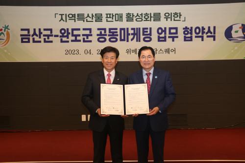 ¿Ïµµ±º(±º¼ö ½Å¿ìö)°ú ±Ý»ê±º(±º¼ö ¹Ú¹üÀÎ)Àº ¾÷¹« Çù¾àÀ» ÅëÇØ ¿ÏµµÀüº¹°ú ±Ý»ê ÀÎ»ï µî Æ¯»ê¹° ÆÇ¸Å Ȱ¼ºÈ¸¦ À§ÇØ ±¹³»¿Ü °øµ¿ ¸¶ÄÉÆÃÀ» ÃßÁøÇϰí, Áö¿ª Ư»ê¹°À» Ȱ¿ëÇÑ Á¦Ç° °³¹ß, Áö¿ª ÃàÁ¦ °³ÃÖ ½Ã »óÈ£ ±³·ù µî¿¡ ÇùÁ¶Çϱâ·Î Çß´Ù.