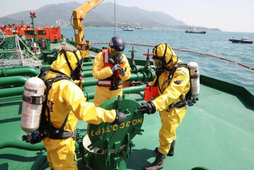 ¹ÚÁ¦¼ö ¿©¼öÇØ¾ç°æÂû¼ÀåÀº ¡°´ëÇü ÀθíÇÇÇØ¿Í ¹°Àû ÇÇÇØ¸¦ ÀÏÀ¸Å°´Â À§ÇèÀ¯Çع°Áú ÇØ¾ç»ç°íÀÇ Ãʱâ´ëÀÀÀ» °Á¶Çϰí, Áö¼ÓÀûÀÎ ÈÆ·ÃÀ¸·Î »ç°í´ëÀÀ ¿ª·®À» °ÈÇϰڴ١±°í ¸»Çß´Ù.