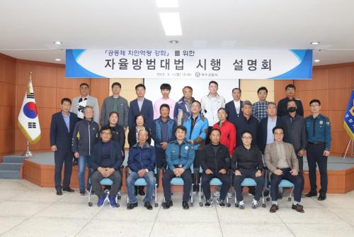 ÀÚÀ²¹æ¹ü´ë ¼³Ä¡ ¹× ¿î¿µ¿¡°üÇѹý·ü(¾àĪ ÀÚÀ²¹æ¹ü´ë¹ý) ½ÃÇà¿¡ µû¶ó Áö³ 5¿ù 1ÀÏ ¿©¼ö½Ã, ÀÚÀ²¹æ¹ü´ëÀå µî 29¸íÀÌ Âü¼®ÇÑ °¡¿îµ¥ ÀÚÀ²¹æ¹ü´ë¹ý ½ÃÇà ¼³¸íȸ¸¦ °³ÃÖÇß´Ù