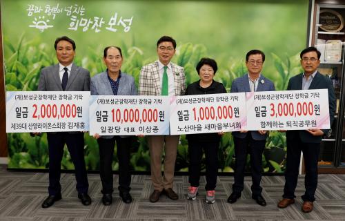 16ÀÏ º¸¼º±ºÀº Àϱ¤´ç(´ëÇ¥ ÀÌ»ïÁ¾), ÅðÁ÷°ø¹«¿øÈ¸(ȸÀå ÀÌÈ«±â), Á¦39´ë º¸¼º»ê¾ç¶óÀ̿½º(ȸÀå ±èÀçÈ«), º¸¼ºÀ¾ ³ë»ê¸¶À»ºÎ³àȸ(ȸÀå ¾çÁ¤¼÷)¿¡¼ º¸¼º±ºÀåÇÐÀç´Ü¿¡ °¢°¢ 1õ¸¸ ¿ø, 3¹é¸¸ ¿ø, 2¹é¸¸ ¿ø, 1¹é¸¸ ¿øÀ» ±âŹÇß´Ù°í ¹àÇû´Ù.