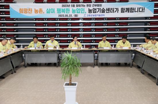À̹ø ÇöÀå °£ºÎȸÀÇ´Â Áö¿ª ³ó°¡µéÀÌ ±âÈĺ¯È¿¡ ¼±Á¦ÀûÀ¸·Î ´ëÀÀÇÏ°í °æÀï·ÂÀ» È®º¸ÇÒ ¼ö ÀÖµµ·Ï ³ó¾÷±â¼ú¼¾ÅÍÀÇ »ç¾÷ ÃßÁø»óȲ µîÀ» Á¡°ËÇÏ°í ¹ßÀü¹æ¾ÈÀ» ³íÀÇÇϱâ À§ÇØ ¸¶·ÃµÆ´Ù.
