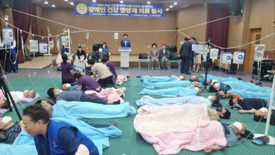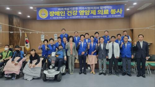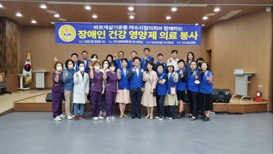 ¹Ù¸£°Ô»ì±â¿îµ¿ ¿©¼ö½ÃÇùÀÇȸ¿¡¼ ÁÖ°üÇÏ°í ¿©¼ö½Ã¸³¿ä¾çº´¿ø(¿øÀå ÀåÁ¤¿ì) ÈÄ¿øÀ¸·Î Àå¾ÖÀκ¹Áö°ü ½Ã¼³À» ÀÌ¿ëÇÏ´Â Àå¾ÖÀÎ 100 ¿©¸íÀ» ´ë»óÀ¸·Î ¿µ¾çÁ¦(¸µ°Å) Åõ¿© ÀÇ·á ºÀ»ç¸¦ ÁøÇàÇß´Ù.