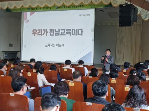 1ºÎ¿¡¼ ¹éµµÇö µµ±³À°Ã» ±³À°±¹ÀåÀº ¡®¿ì¸®°¡ Àü³²±³À°ÀÌ´Ù¡¯¶ó´Â ÁÖÁ¦ÀÇ Æ¯°À» ÅëÇØ Àü³²±³À°ÀÌ ´ç¸éÇÑ Çö½Ç°ú Àü³²±³À°ÀÌ ½ÇÇöÇϰíÀÚ ÇÏ´Â ¹Ì·¡±³À°¿¡ ´ëÇØ ÇÔ²² »ý°¢ÇØ º¼ ¸¸ÇÑ ¸Þ½ÃÁö¸¦ ÀüÇß´Ù. ƯÈ÷, ¡°±×µ¿¾È ´ç¿¬ÇÏ´Ù°í »ý°¢Çß´ø °ÍÀ» ÀÌÁ¦´Â ³¸¼³°Ô(»õ·Î¿î ½Ã¼±À¸·Î) º¼ ¼ö ÀÖ´Â ¿ª·®ÀÌ ÇÊ¿äÇÏ´Ù.¡±°í °Á¶Çß´Ù.