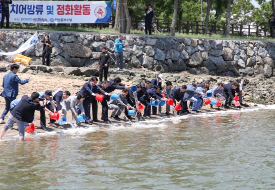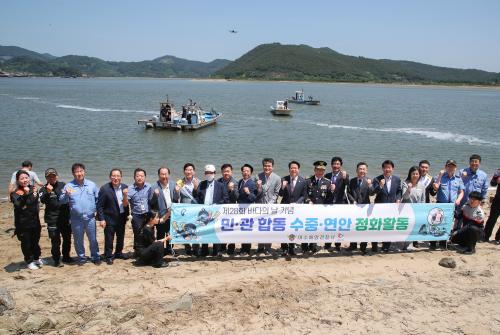 À̳¯ Çà»ç´Â ´ëÇÏ(20¸¸ ¸¶¸®)¿Í °¨¼ºµ¼(2¸¸ ¸¶¸®) Ä¡¾î¸¦ ¹è¾Ëµµ ¼öº¯°ø¿ø ¾Õ¹Ù´Ù¿¡ ¹æ·ùÇßÀ¸¸ç, Çà»ç Á¾·á ÈÄ¿¡´Â ¿ì¸® ¹Ù´ÙÀÇ °¡Ä¡¿Í ÇØ¾ç ȯ°æ º¸Á¸¿¡ ´ëÇÑ Á߿伺À» ¾Ë¸®±â À§ÇØ ±¤¾ç½Ã¾î¹Îȸ¿Í ¿©¼öÇØ¾ç°æÂû¼°¡ ÇÔ²² ¹Î°ü ÇÕµ¿ ¼öÁß ¿¬¾È Á¤È Ȱµ¿À» ÆîÃÆ´Ù.
