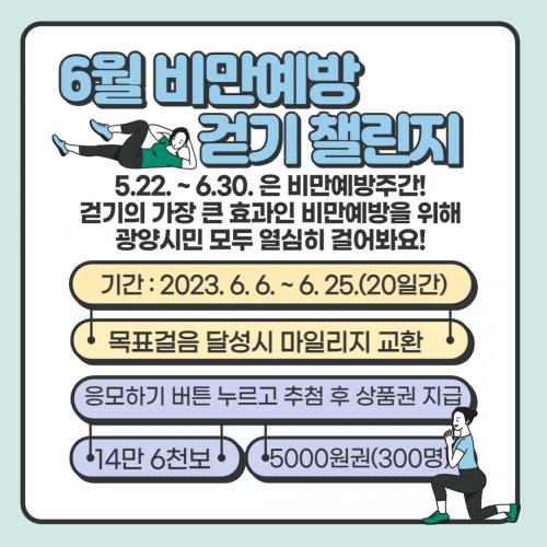 ¼¿µ¿Á °Ç°ÁõÁø°úÀåÀº ¡°ºñ¸¸ ¿¹¹æ ÁÖ°£(5. 22.~6. 30.)À» ¸Â¾Æ ½Ã¹ÎµéÀÇ »ýȰ ¼Ó °È±â¸¦ Àå·ÁÇÔÀ¸·Î½á ºñ¸¸À» ¿¹¹æÇϰí, °Ç°À» Áö۱â À§ÇÑ ²ÙÁØÇÑ °È±â ½À°ü Á¤ÂøÀ¸·Î Áö¿ª»çȸ °Ç°ÇÑ °È±â ¹®È°¡ Á¶¼ºµÇ±æ ¹Ù¶õ´Ù¡±°í ¸»Çß´Ù.