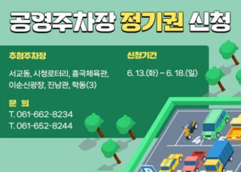 À̹ø Á¢¼ö´Â °ü³» °ø¿µÁÖÂ÷Àå 29°³¼Ò Áß Á¤±â±Ç ÀÌ¿ëÀÚ°¡ ¸¹Àº °ø¿µÁÖÂ÷Àå 6°÷À» ´ë»óÀ¸·Î ÀÌ·ç¾îÁø´Ù. ½Åû±â°£Àº 6¿ù 13ÀϺÎÅÍ 18ÀϱîÁöÀ̸ç, Ãß÷°á°ú´Â 6¿ù 19ÀÏ ¿ÀÀü 10½Ã °ø´Ü ȨÆäÀÌÁö¸¦ ÅëÇØ ¹ßÇ¥ÇÑ´Ù. ´ç÷ÀÚ´Â ÀÌ¿ë±Ý¾× ¼±³³ ÈÄ, 7¿ùºÎÅÍ 12¿ù±îÁö 6°³¿ù°£ ÀÌ¿ëÇÒ ¼ö ÀÖ´Ù.