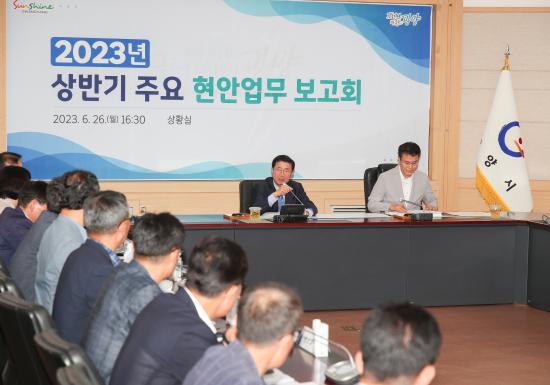 À̳¯ º¸°íȸ´Â 51°³ Àü ºÎ¼°¡ »ó¹Ý±â ÁÖ¿ä Çö¾È¾÷¹«¿¡ ´ëÇØ ¼·Î °øÀ¯ÇÏ°í ¹®Á¦Á¡ µî °³¼±¹æ¾ÈÀ» ³íÀÇÇϱâ À§ÇØ ¸¶·ÃµÆ´Ù.
