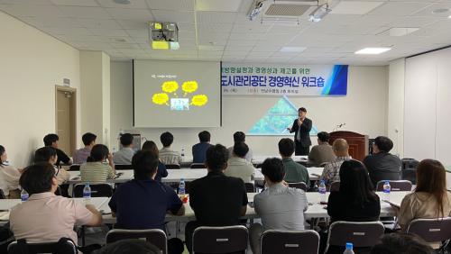°ø´Ü °æ¿µÁø°ú ÆÀÀå, °æ¿µÆò°¡ ÁöÇ¥´ã´çÀÚ µî 30¿©¸íÀÌ Âü¼®ÇÑ ¿öÅ©¼ó¿¡¼´Â ¿ÜºÎÀü¹®°¡ ±³À°°ú ÇÔ²² °æ¿µ¼º°ú Çâ»ó ¹æ¾È¿¡ ´ëÇÑ ÅäÀǸ¦ ÁøÇàÇß´Ù.