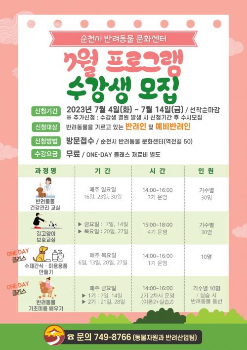 ÇöÀç 7¿ù ÇÁ·Î±×·¥ ¼ö°»ýÀ» 14ÀϱîÁö ¼±Âø¼ø ¸ðÁýÇϰí ÀÖÀ¸¸ç ¹Ý·Áµ¿¹°À» Ű¿ì°í ÀÖ´Â ½Ã¹Î, °ü½ÉÀÌ ÀÖ´Â ¿¹ºñ ¹Ý·ÁÀÎµé ´©±¸³ª ¹æ¹® ¹× ÀüÈ »çÀü ¿¹¾àÀ» ÅëÇØ ½Ã¼³ ¹× ±³À° ÇÁ·Î±×·¥¿¡ Âü¿©ÇÒ ¼ö ÀÖ´Ù. ´Ü, ¹Ý·Áµ¿¹°Àº µ¿¹°µî·Ï°ú Á¾ÇÕ ¿¹¹æ Á¢Á¾À» ¿Ï·áÇØ¾ß ÃâÀÔÀÌ °¡´ÉÇÏ´Ù.