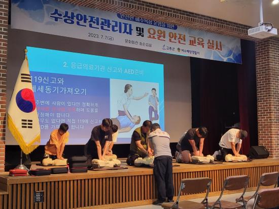 À̹ø ±³À°Àº ÇØ¼ö¿åÀå ¹°³îÀ̰´ ¾ÈÀü»ç°í ¿¹¹æÀ» À§ÇØ ¿©¼öÇØ°æ ±¸Á¶´ë¸¦ Æ÷ÇÔÇÑ °æÂû°üÀÌ ±³À° °»ç·Î ÁöÁ¤µÇ¾î ÇØ¼ö¿åÀå °³ÀåÀ» ¾ÕµÎ°í ¾ÈÀü°ü¸® ¿ä¿øµéÀÌ ¼ö»ó »ç°í ¹ß»ý ½Ã ½Å¼ÓÇÑ ´ëó ¹æ¹ýÀ» ½ÀµæÇϱâ À§ÇØ ¸¶·ÃµÆ´Ù.