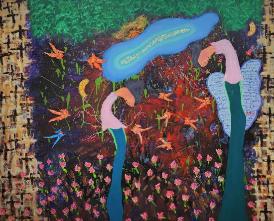 ÁøÁÖ¸°À̶ó´Â ¿´ë¾îÀÇ ¼±ÇÔ°ú ¼øÇÔ ¾È¿¡ °¨Èï ÇÏ¿© ÀÛǰÀÇ ÁÖ¿ä ¼ÒÀç°¡ µÇ¾úÀ¸¸ç, ÀÚ½ÅÀÇ ½Ã¼±À¸·Î ¹Ù¶óº¸´Â ¼¼»óÀ» À̹ÌÁöÈ ½ÃÄÑ À§¾È°ú ½°À» ¸¹Àº »ç¶÷µé°ú ³ª´©°íÀÚ ÇÑ´Ù. ÀÛǰ¸í 'ÁøÁÖ¸°-³ª¿Í³ª'´Â ³ªÀÇ º»ÁúÀ» ã¾Æ°¡´Â °úÁ¤¿¡¼ ¹ß°ßÇÑ ¼ø¼öÇÑ ÀھƸ¦ ¿©·¯ °¡Áö·Î ÇØ¼®ÇÒ ¼ö ÀÖ´Â ¹«Ç¥Á¤ÇÑ »ç¶÷ÀÇ ±¸¼ºÀ¸·Î »ý°¢ÇÏ°Ô ¸¸µé¾ú´Ù. ÀÛǰ ¼Ó ¾ó±¼À» ¸¶ÁÖÇÏ¸é ´Ù¾çÇÑ °¨Á¤ÀÌ Ç¥ÃâµÇ¾î °¨»óÀÚÀÇ ÇöÀç ±âºÐ »óÅ¿¡ µû¶ó ´À²¸Áú ¼ö Àִ ǥÁ¤ º¯È°¡ Àç¹ÌÀÖ´Ù.