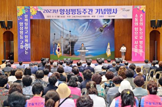 °íÈﱺ ¿©¼º´ÜüÇùÀÇȸ(ȸÀå ±è¿¬¼÷)°¡ ÁÖ°üÇÑ À̹ø Çà»ç´Â ¡®ÇÔ²² ÀÏÇϰí ÇÔ²² µ¹º¸´Â ¾ç¼ºÆòµî °íÈÀ̶ó´Â ½½·Î°ÇÀ¸·Î, 1ºÎ ±â³ä½Ä¿¡¼´Â °íÈﱺ Àü¼Ó¿¹¼ú´ÜÀÇ ½ÄÀü°ø¿¬ ½ÃÀÛÀ¸·Î ¾ç¼ºÆòµî ¹®ÈÈ®»ê¿¡ ±â¿©ÇÑ À¯°øÀÚ¿¡ ´ëÇÑ Ç¥Ã¢ ¼ö¿©, ±â³ä»ç, ÆÛÆ÷¸Õ½º ¼øÀ¸·Î ÁøÇàµÆÀ¸¸ç, 2ºÎ Çà»ç¿¡¼´Â ¡®¼¼»óÀ» ¹Ù²Ù´Â ¿©¼ºÀÇ Èû¡¯À̶ó´Â ÁÖÁ¦·Î Á¶Á¤È£ °»çÀÇ Æ¯°À» ÁøÇàÇß´Ù.