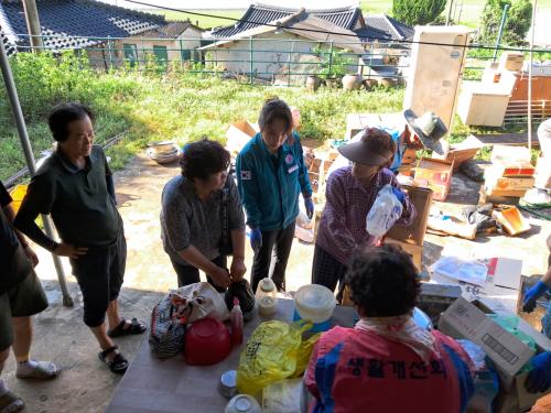 À̹ø »ç¾÷ ÃßÁøÀ» À§ÇØ µ¿°¸é »çȸº¸ÀåÇùÀÇü¿Í º¹Áö±âµ¿´ë, »õ¸¶À»ºÎ³àȸ´Â »ç¿ëÇÏÁö ¾ÊÀº °¡Àü, ¿Ê µîÀ» Á¤¸®Çϰí Áý¾È ¾²·¹±â¸¦ 1Åæ Æ®·° 2Â÷ Á¤µµ Ä¡¿üÀ¸¸ç, ÈÑ¼ÕµÈ º®Áö¿Í °íÀå ³ ¼±¹ÝÀ» ö°ÅÇÏ´Â µî °¢Á¾ ºÀ»ç¿¡ µ¿ÂüÇß´Ù.